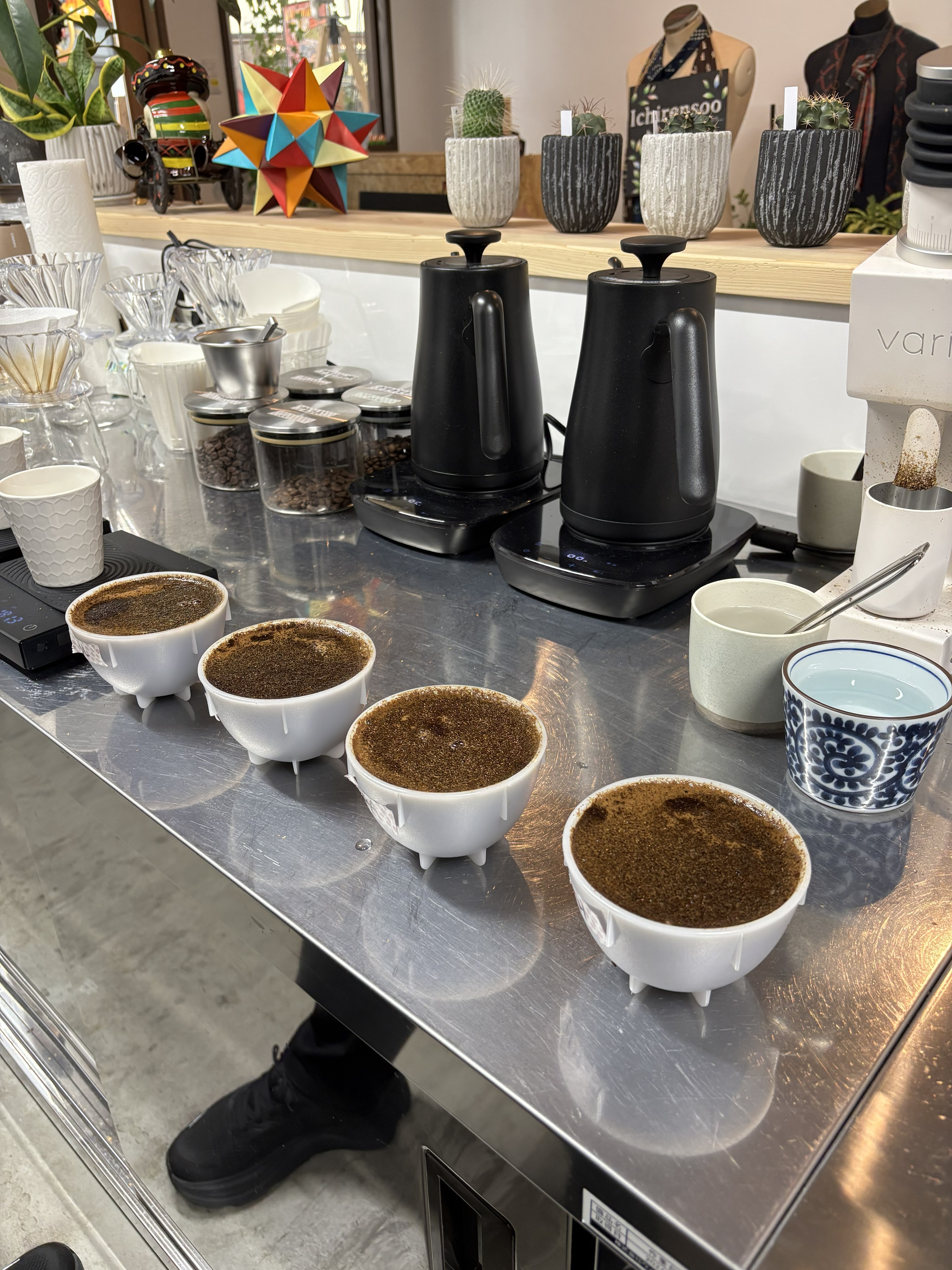 そこで、新たに仕入れたグアテマラ、ブラジル、コロンビア、エチオピアの4種類の豆を使って、ブレンド比率を見直すための作業を行いました。