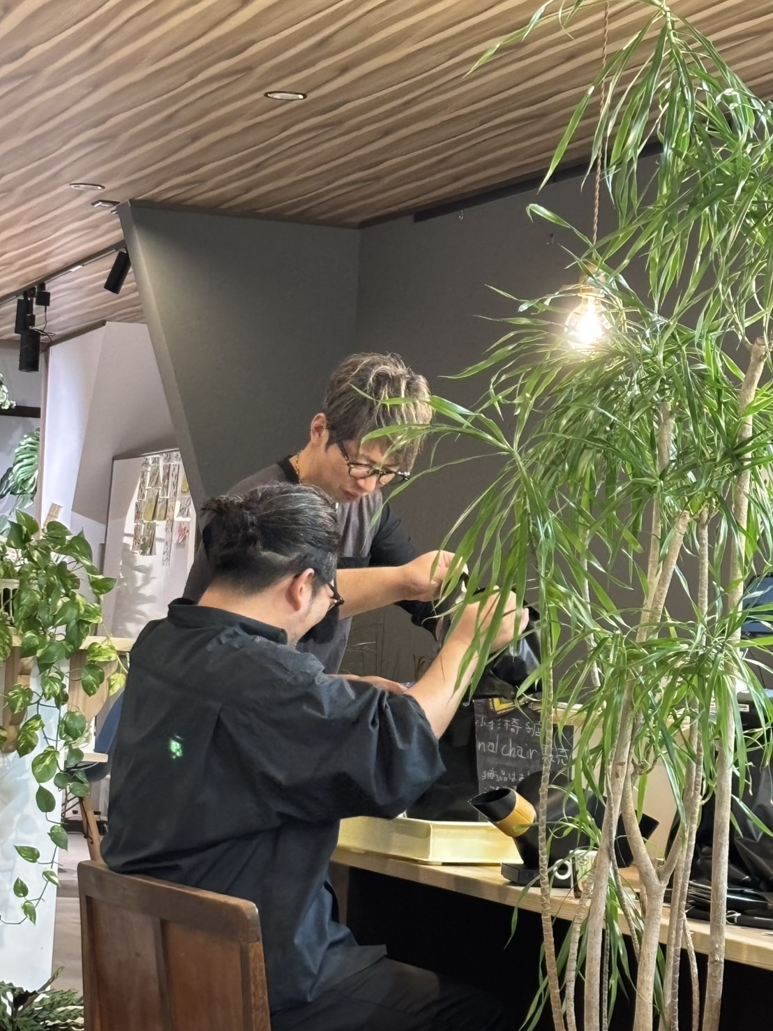 いつものように浮岳珈琲さんにお越しいただき、すでに焙煎している4種類の豆をいくつかのブレンド比率でテイスティングして、自分達の目指す味を探ります。